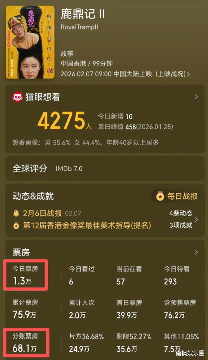 是以,如今《鹿鼎记2》又来了,收货可思而知。 从重映都能破亿,径直缩水到不足百万,蓝本只需要四部作品就能作念到。 其实日排片能达到5000,好像都还有下降的空间。