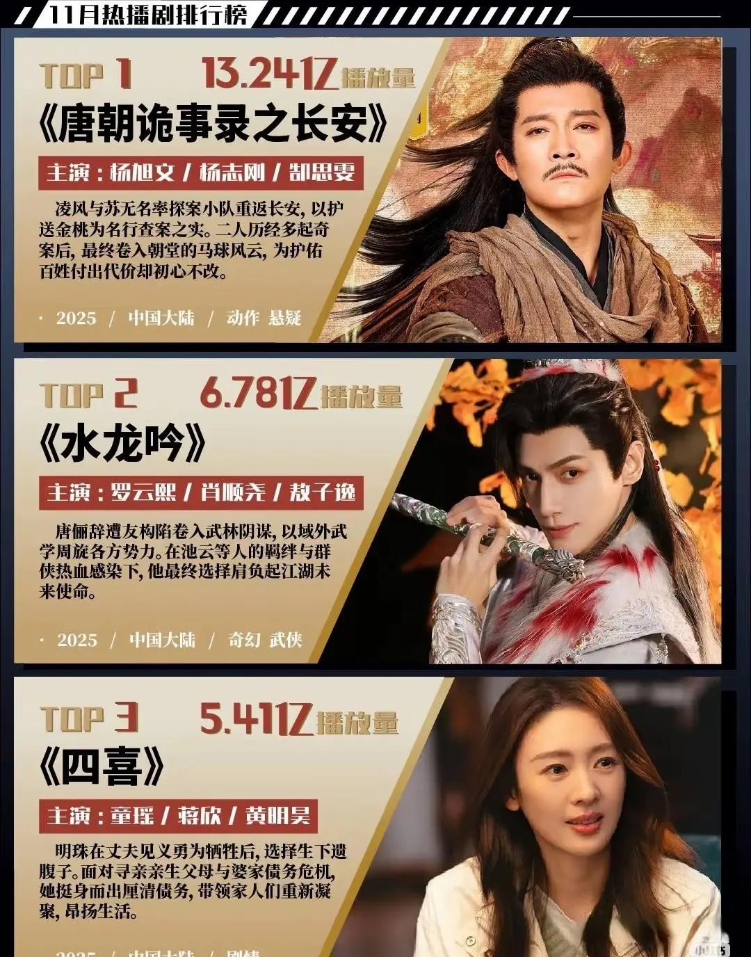 十一月的国产剧市集险些让东说念主心花绽放,你追的那部榜上著名吗?剧迷们这下可确实过足瘾了!古装剧把荧屏装点得满满当当云开体育,港剧续作照样精彩纷呈。 古装阵营此次杀得那叫一个得志淋漓。《唐朝诡事录之长安》贯串端出八个离奇案件,盛唐的风浪幻化在这些故事里展现得大书特书,"唐诡小分队"捏政堂上的那些勾心斗角看得东说念主揪心不已。历史安谧感和悬疑元素碰撞出火花,阿谁时期的政事风浪仿佛就在目下。《水龙吟》玩起了电影质感的东方韵味,奇幻剧里杀出这样一匹黑马,罗云熙此次的造型确实绝了,跟变装险些是急公好义。《暗河传》把江湖里的权利图夺拍得暗中恐怖,制作清雅经由径直登顶古装剧口碑之王,不雅众们都在跋扈打call。成毅挑大梁的《全国剑心》让仙侠粉们又燃起来了,"王权焕发"的经典滋味又回来了,演技也曾安如磐石。 《入青云》《江山枕》《凤凰台上》这些作品更是把仙侠的甜虐和宅斗的权术玩得申明鹊起,总有一部能戳中你的心窝子。情谊戏和权术戏都铺得开,各式口味的不雅众都能找到我方的心头肉。 现实题材这边也没闲着,跟古装剧打得难分上下。《新闻女王2》终于等来佘诗曼转头,传统媒体和自媒体的职场较量火花直冒,评分稳得让东说念主深信,皆备不比第一部差。《千里默的荣耀》满满的正能量,社会价值拉满,硬是跟古装剧抢土地,挤进了榜单前哨。《四喜》在央视收视榜拿了个第二,那种面临活命的剧情暖到执行里,用最粗鄙的活命细节安慰着不雅众的心。《他为什么也曾只身》直击都市情谊痛点,朱珠配霍建华险些是绝配,都市题材的现实魔力展现得大书特书。 悬疑剧也有了新的骄子。《树影迷宫》和《长安》两部作品联手镇场,复杂到让东说念主脑壳疼的案件谋划,烧脑情节让东说念主进退无据,悬疑迷们此次可有得忙了。 十二部剧涵盖七个不同类型,从古装奇幻到现实职场,从仙侠情缘到悬疑推理,剧荒的一又友透澈自如了云开体育,遴荐多得让东说念主头晕眼花,各式偏好的不雅众都能找到我方的心头好。 |