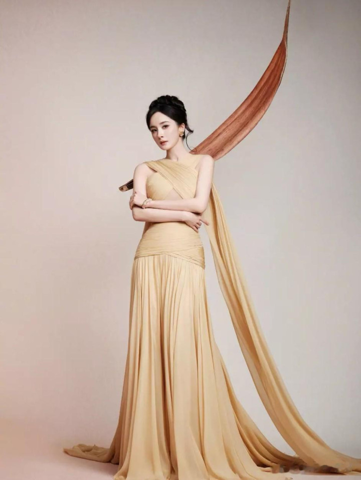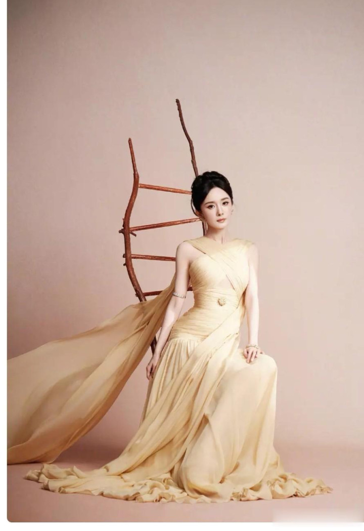 杨幂的五官良好立体,一对灵动的桃花眼自带风情,搭配这款黄色礼裙时,她遴荐了清透的妆容,淡扫娥眉,唇间点缀着随和的豆沙色口红,既弱化了黄色的明艳感,又让全体造型多了几分温婉。她将长发松松挽成低发髻,鬓边垂落几缕碎发,修饰出工致的脸型,再搭配上节约的钻石项链与耳坠,细碎的钻光与黄色礼裙相互衬托,让她如同从油画中走出的古典好意思东谈主,又带着当代女性的飒爽与自信。