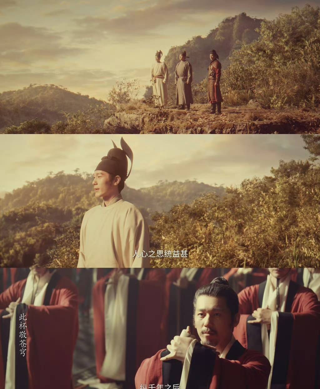 大结局定格在钱弘俶、赵匡胤和柴荣三兄弟山巅看万里疆土,条理舒展的姿色。这时钱弘俶无数曾经经厌世了,在另一个世界看到了昔日好兄弟。太平年下的一杯热酒,三东谈主活着时没同期喝上,历程几东谈主的发奋努力,终于让后世得享太平光景。