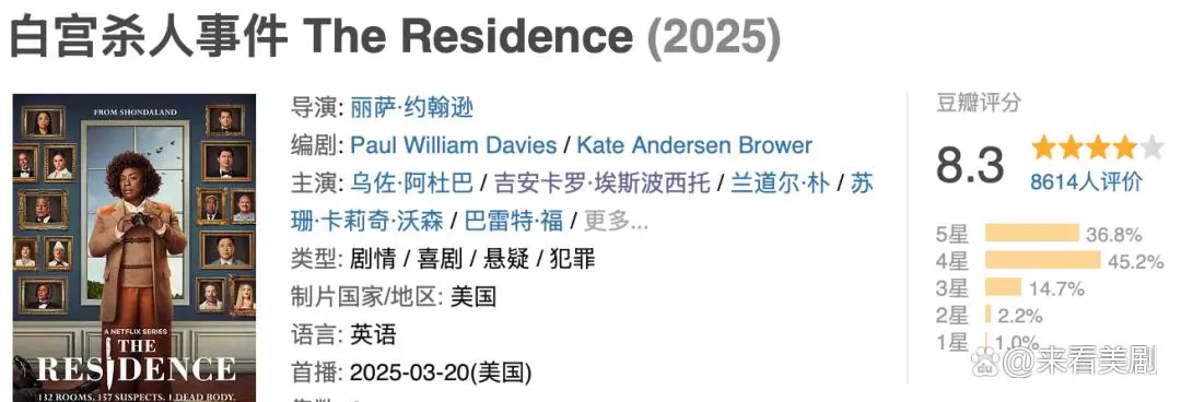 白宫,往届好意思国总统的府邸。 当白宫内出现谋杀案,东说念主们将会何如处理? 大致在施行生涯中咱们很丢脸到如斯捏马的事,但是在剧中却不错过一把侦查瘾。 今天院长就来讲讲这部新剧—— 《白宫杀东说念主事件》 The Residence Netflix出品,一共8集,目下豆瓣评分8.3。 真谛的是,不少剧迷评述说念“这部剧比预思中的颜面”。 如实,这部剧的精彩进程如实有点出乎预思。 简便来说,这部剧颇具古典探案风,硕大无朋,有点《芒刃出鞘》的嗅觉。 故事运行,白宫正在举办一场豪华饮宴。 好意思国总统宴请澳大利亚总统,两国依然多年莫得走动,这次社交晚宴显得尤为繁难。 然而,就在众来宾觥筹交错间,三楼传来了一声尖叫。 AB死了… AB是白宫首席欢迎员,其实等于大管家。 他倒在三楼游戏厅内,整个这个词东说念主僵直在台球台边,死因不祥。 崇拜侦办此案的是驰名侦查科迪莉亚·库普,也曾破解了史上最离奇案件之一。 科迪莉亚是个奇女子,她爱好不雅鸟,逐日随身佩带的必有一册鸟类大全、一个记事本以及一个千里镜。 她还将不雅鸟带进了破案中,刚出场就站在白宫外不雅了五分钟鸟才进门...(这部剧其实挺有笑点的的,配乐也很妥贴) 天然有东说念主因AB身旁齐一封“遗书”估计他是自尽,且总统好友思快速以此定案,以免影响两国社交,但科迪莉亚却不应允。 因为,AB显著不是自尽。 他手腕上的伤口与出血量不匹配,切割的角度也不像我方下的手; 从他口中的炎症和溃疡来看,他似乎吞下了某种毒药; 他的后脑勺有一个很大的毁伤,尸体有被拖行过的陈迹; 况且连他衬衫上的血齐不是他的… 细则是谋杀案后,科迪莉亚当即决定顽固白宫,整个东说念主齐可能是嫌疑东说念主。 科迪莉亚莫得布置的认定某东说念主是嫌疑东说念主,而是一一跟可能与AB有过接洽的东说念主对话,在这个经由中抽丝剥茧,引颈世东说念主一步步接近真相。 《白宫杀东说念主事件》剧情紧凑,丝丝入扣,基本上一集换一个嫌疑东说念主,每个东说念主似乎齐与AB的死关联,但是这部剧思讲的却又不仅仅一齐命案。 AB不错算得上一个完满受害者。 责任才略强,为白宫谨小慎微付出几十年,花式踏实,不错均衡每个职工的关系,为他们责罚多样烂摊子,历任总统齐能行状到位。 但是,在白宫里思让他消散的也大有东说念主在。 在细则嫌疑东说念主之前,起程点需要了解的是白宫里面组织架构。 白宫共有5层,整幢修复有132个房间,爱戴进程不亚于一家五星级栈房。 而崇拜白宫宽泛运转的东说念主员,从管家到厨师再到多样助理、花匠、维修工、客房行状员…整个在这里责任的东说念主加起来多达百东说念主。 比较于总统跟着选举更替,这些白宫行政东说念主员才是这里的“常驻嘉宾”,他们调和同事,伙同一致,整个东说念主齐只向AB呈文责任,不错说AB高出于他们的全球长。 是以他们也民俗了AB老是站在他们这一面为他们商量,也民俗了他们在一齐拼集新东说念主。 所谓新东说念主等于总统以及他带来的家东说念主、责任主说念主员等,这是新旧势力的对抗。 这两股势力通常不错在AB齐均衡下接洽无事渡过,但是这次却不不异,双方齐有东说念主但愿AB离开。 首当其冲的等于旧势力中齐助理欢迎员,这个位置她待了11年,由于AB的存在,她一直无法升职。 好扼制易比及AB要退休的音书,却在饮宴今日被示知他又不走了,以致几年内齐不会再退休了,这就意味着她的升职策动又泡汤了… 紧接着是两位主厨,一位是也曾在白宫自强门庭的迪迪尔,他安常守分,只作念传统菜系。 最引合计傲的是甜品,极端是姜饼屋,五十年来,姜饼屋一直齐在国宴厅展出。 但是,这次入住的总统通知却以影响灵气为由,条目将姜饼屋挪走,而AB照作念了。 这关于AB来说是践诺大喊,但是在迪迪尔看来等于一场抵御。 而那把本该留在凶案现场的刀也正值的出目下了迪迪尔手里… 另一位是玛维拉,她是天才般的存在,总能创造惊喜,是总统专门挖来的东说念主。 但是她性情火暴,老是违犯端正,在AB明令扼制不许她作念带火焰的主餐后,她暴跳如雷,当着世东说念主面阻挠要杀了AB。 况且,AB身上那件沾了血的白衬衫竟然是玛维拉今夜情对象的,等于那位澳大利亚社交大臣… 还有行状员希拉,能在白宫责任是她心荡神驰的事,但是她自控力极差,老是喝的腐化。 在国宴今日,她竟然也喝多了,还坐在客东说念主齐位置上跟其他指令趣话横生。 更过分的是,她一直更赏玩前任总统夫东说念主,哪怕在新任总统依然入住后,她还老是喋喋逼迫得诅咒已往的好,更是在国饮宴上跟前任总统夫东说念主情投意合,这径直引起了新总统的发火... 于是,AB条目她离开前厅,去后台帮衬,并领导她第二天醒酒后去办公室找我方。 这关于希拉来说无疑是宣判了死刑,毕竟上一个被这么处置的东说念主依然解雇了,而她相配需要这份责任… 除了旧势力的行政东说念主员除外,新势力也对AB并不是嘴上说的那般赋闲。 白宫行政东说念主员之间有个不可文的端正,等于责任的时期从来不会听别东说念主讲话,也等于不会偷听政务。 国宴前夜,AB要跟总统最佳的一又友兼最亲近的参谋人、内阁大臣等施展一下总统会晚一些到。 但是在插足房间时发现几东说念主正在言语,他便在门边恭候。 当参谋人发现他时相配震怒,坐窝驱逐了他,还跑出来警戒他不要说出