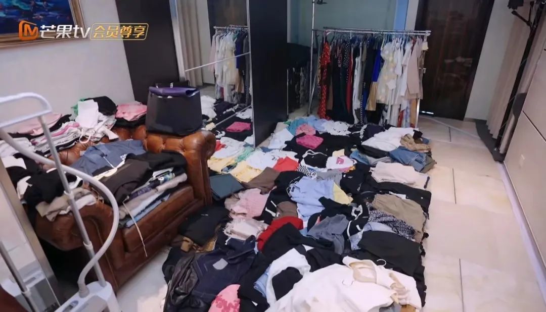 不得不说,衣帽间果真很适应女明星的气象,一个字——多!衣着多到放不下,但如实乱中有序,叠好的衣着按照搭配,一套一套的摆放在地上,墙面镜省略更好的达成形象惩处。