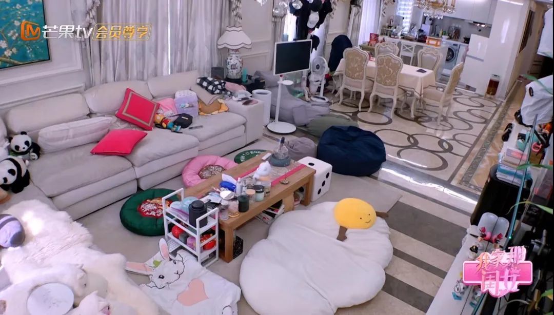 通盘这个词空间属于欧式古典格调,柳岩之前暗意过,是因为姆妈心爱,是以才装修成这么的。 诚然是当下贱行的LDK客餐厨一体的筹谋,但居品胪列,还是传统客厅老三件的表情。米白色的L型大沙发占据了主体,沙发上是多样毛绒玩偶、抱枕。空间不小,但东西也比较多,视觉上并不整洁,看得出是耐久生计的方位。荣华的水晶吊灯、香槟色欧式窗帘,关于一些年青东说念主可能会认为有些宽泛、逾期,但却贫苦的领有炊火气。