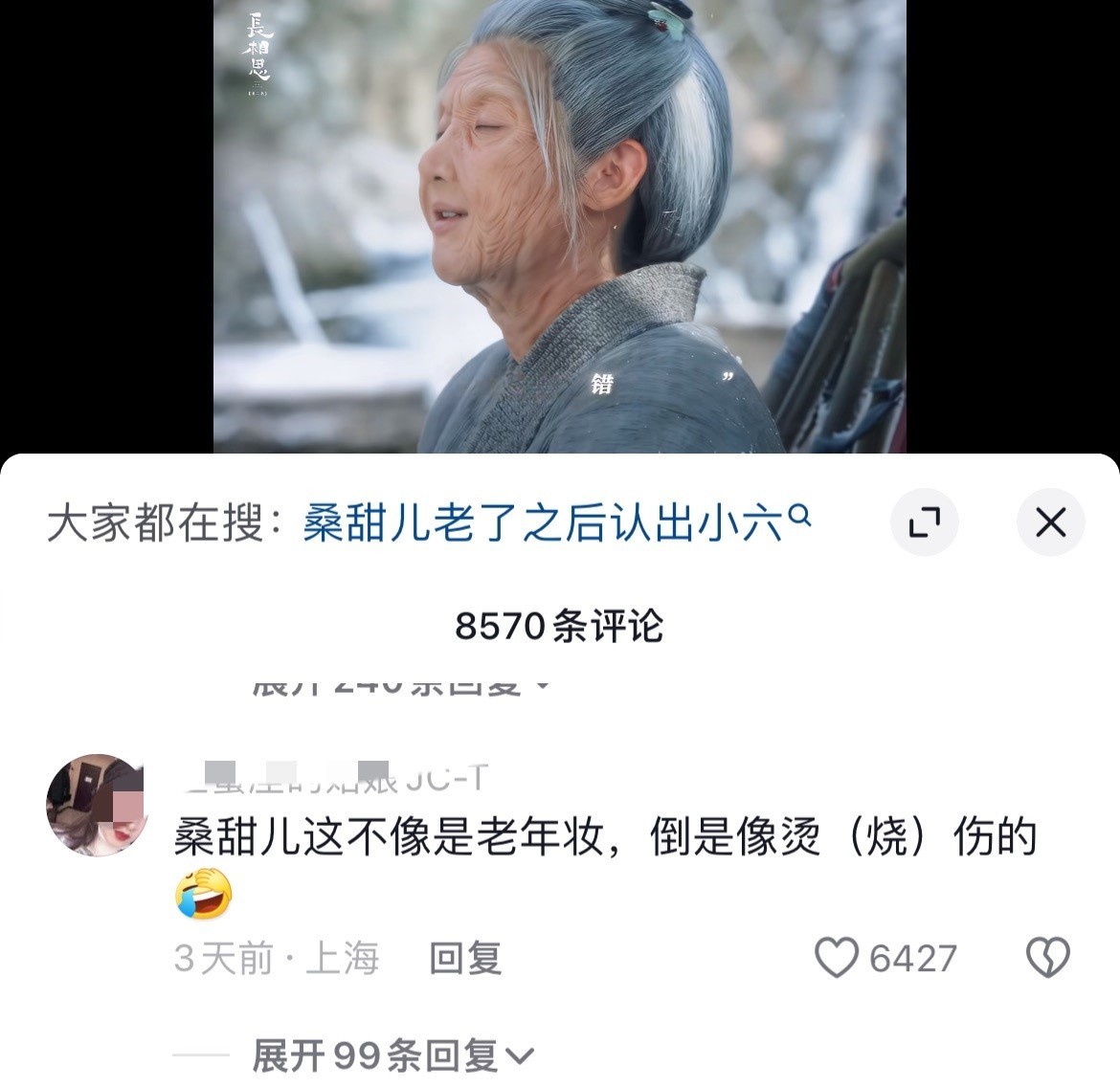 这一幕本应动荡心弦,引东谈主泪目,然则桑甜儿的老年妆确切太过拉风,让东谈主难以参预热枕。