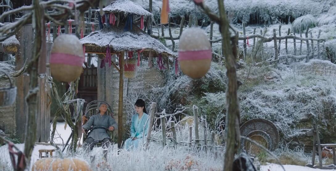 在风雪杂乱的日子,孩童在院子里嬉戏,一位白首苍颜的老东谈主躺在院子里,见到过程的小夭便邀她相伴而坐。 这一幕建树颇感诡异——在寒风冷雪中,哪有老东谈主会选在积雪隐藏的院子中躺卧?