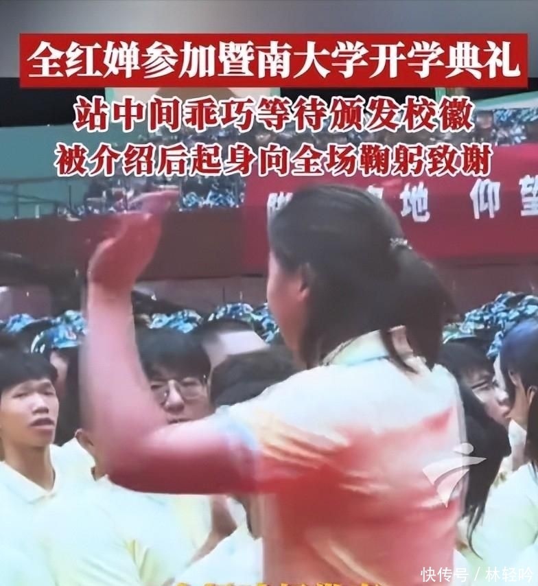 直面争议,网罗上质疑、嘲讽接续 9月15日,暨南大学开学仪式上。 全红婵穿戴一件浅近的黄色T恤,称心地坐在壮盛队伍中。 这本是一个再平方不外的场景,却被部分网友坏心解读。