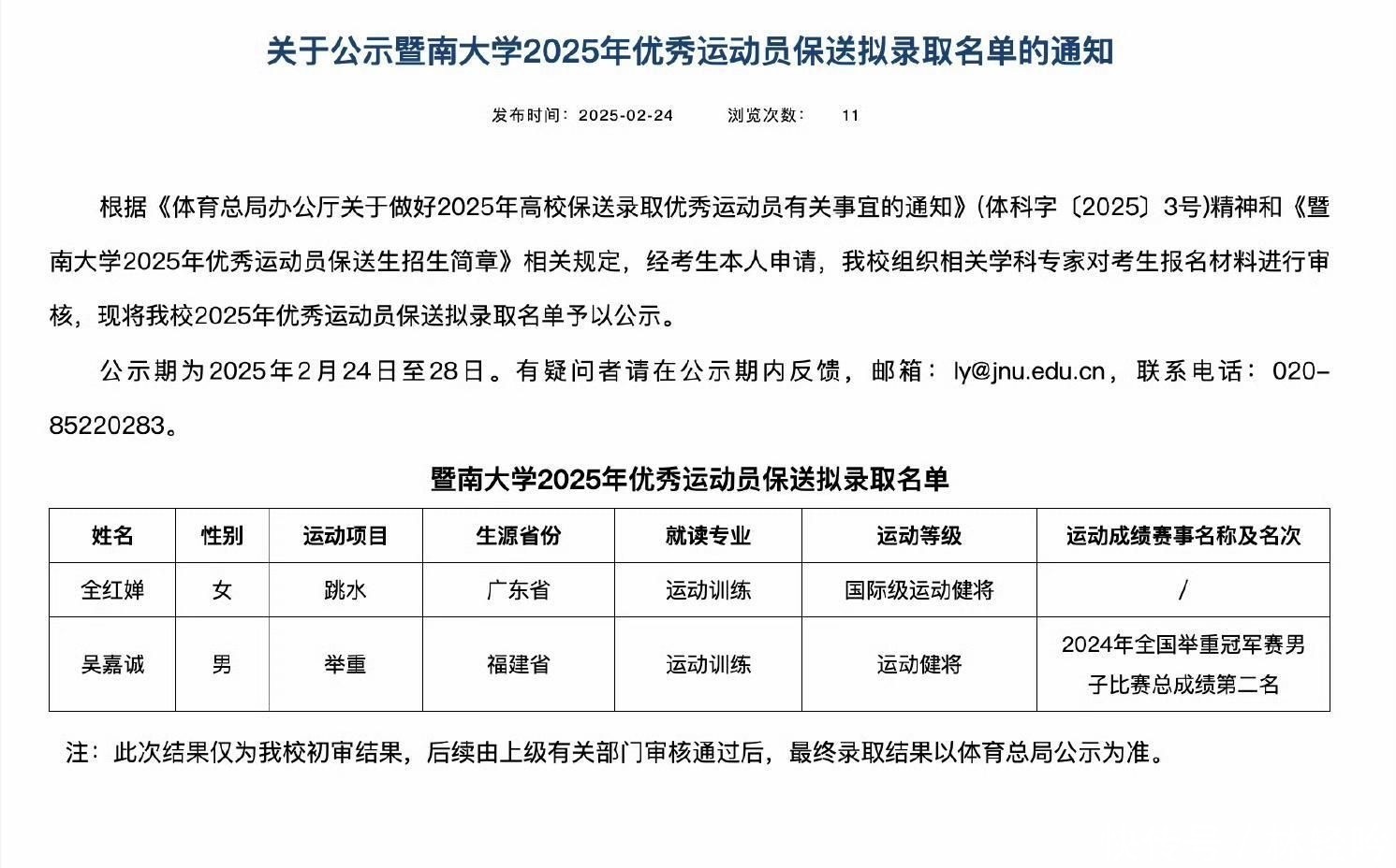 早在年头暨南大学公布考中名单时。 苏炳添就浮现,会为全红婵这类怒放员量身打造“尽头课程”。 开设精英班,确保查考与学业同步进行。