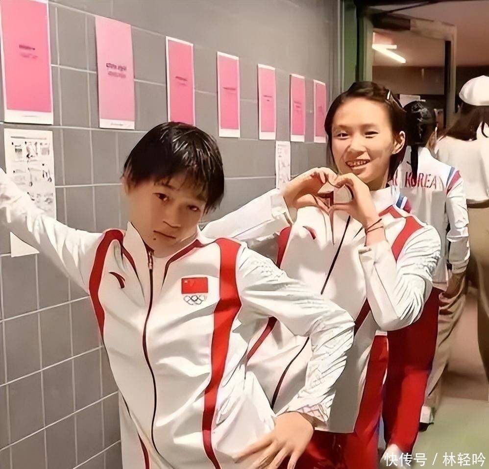 相片中她未施粉黛,皮肤是健康的古铜色。 与身旁妆容高超的同学比较,显得额外质朴。 这张相片一上网,驳斥区已而刷屏:“太可儿了”“冠军也有青涩模样”。
