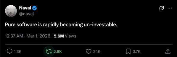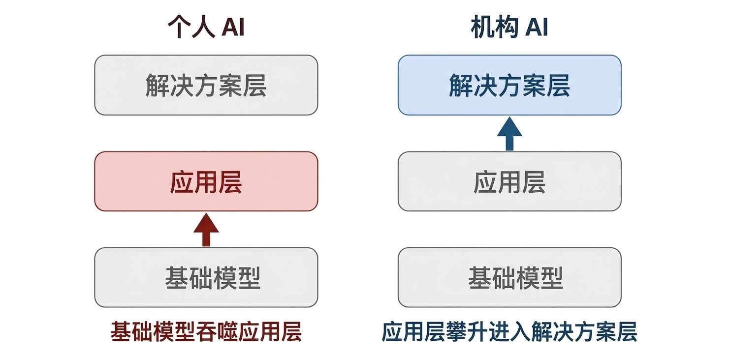 “纯软件正‘迅速变得失去投资价值’。而纯功绩则无法完结范围化。着实的持久价值,积聚在将技能与效果相都集的‘科罚决策层’(Solution layer)。 以并购(M&A)为例。个东谈主化 AI 匡助分析师更快地确立模子;而机构化 AI 则能从一百个候选者中识别出那一个值得追求的交游敌手,并将潜在计算范围扩大到一千个。前者省了时分,后者创造了真金白银。