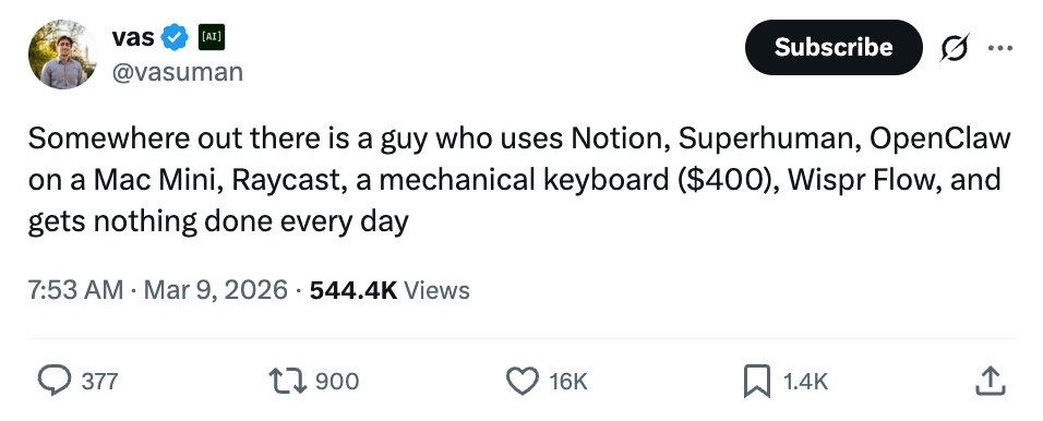 这个宇宙总有那么一个东谈主:他用 Notion 记条记、Superhuman 发邮件、Mac Mini 跑 OpenClaw,还配着 Raycast 快捷启动、400 刀的机械键盘和 Wispr Flow 语音输入——限度每天啥正事都没干成。 这一年来被反复说起的“功绩即软件”(services as software)主题天然场所正确,但并未给出具体蓝图。而且它忽略了一个更大的图景:着实的调动不在于从用具转向功绩,而在于将技能与机构(不管是传统机构如故新兴机构)如鱼似水。一个着实高效的改日需要一类全新的产物——即来日的“活水线”。 高效的组织需要的是“机构化智能”(Institutional Intelligence)。 本文将潜入探讨差别“机构化 AI”与“个东谈主化 AI”的七大成分。改日十年的统共 B2B AI 领域都将确立在这些各别之上: