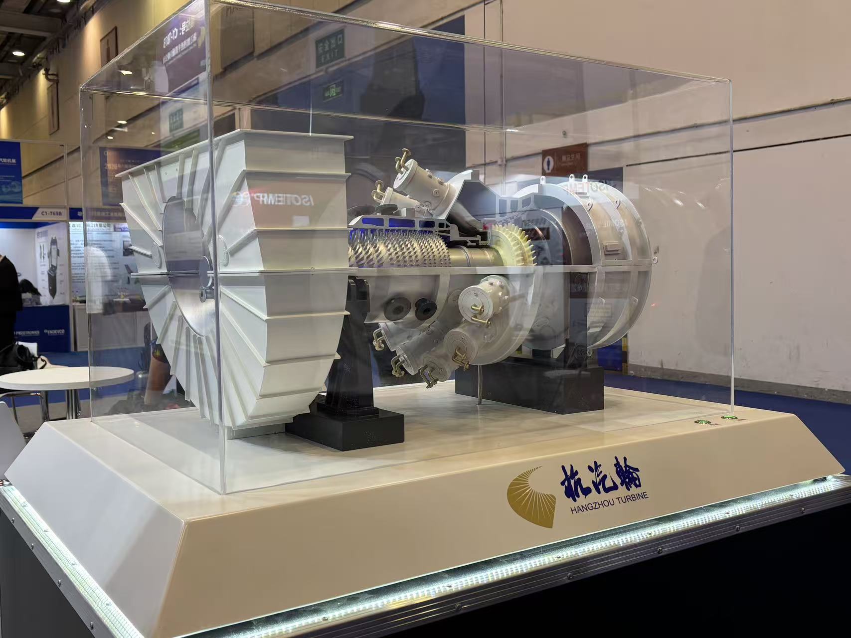 哈尔滨汽轮机厂展台过头燃气轮机样机HGT16模子。拍摄:蒋习 除了上述三家国企外,其他企业也在积极研制。 界面新闻从杭汽轮展台销售东说念主员处了解到,其自主研发的HGT51 F型燃气轮机已完成首台制造,第二台机组已于旧年5月鉴定合同,瞻望本年年底请托。