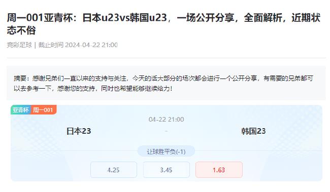 周一001亚青杯:日本vs韩国 日本与韩国被分到了本小组当中,而这两支球队在前两场当中齐依然是以全胜的姿态提前一轮赢得了晋级淘汰赛的阅历,许多东说念主齐以为这两支球队当今是赢得晋级的出线权之后本场比赛将会无欲无求,关联词有一个点是咱们需要去值得重视的所在,这两支球队淌若说以第1名的身份出线的话,那么行将对阵到的是A组的第2名,而勺组当今的名次时局依然基本详情,第二是印度尼西亚,而第1名是卡塔尔,而非常有真义的是,在外围赛当中,卡塔尔和韩国队是分站的本旨小组,那时韩国队是0:2输给了卡塔尔也可谓是韩国队的一大苦主,而淌若说韩国队以第1名的身份晋级的话,那么行将对阵到实力略微较弱的印度尼西亚。而在这种情况之下,我以为韩国队深信照旧会拼尽全力的,而日本队在本届亚青赛赛事当中亦然一支最大的夺冠热点,我以为以日本队的一个实力,不管是在濒临到a组的哪一支球队照旧有着很大的但愿梗概连续挺进八强的一个情景的,那么日本队念念不念念在本场比赛去踢到印度尼西亚呢,这亦然无可厚非的,也念念去打弱队,而以现时两边在声势上的一个举座实力上来看的话,日本队可谓是派出了日本行状联赛当中的一些主力球员,举座实力还吵嘴常的强盛,关联词韩国队这支球队的话,举座实力也并不弱,天然说韩国队是有几名球员是五大联赛当中二流俱乐部效用,关联词这些俱乐部也齐莫得进行一个放东说念主,导致韩国队的一个实力是有着一定的下滑,不外韩国队亦然在本届亚青赛当中派出了在k联赛当中的一些比拟有实力的球员,我以为本场比赛跟日本队照旧五五开的一个场所。 而两边在以往历史交战当中,日本队似乎照旧要占据着一定的优势优势,关联词本场比赛在两支球队提前出线的情况之下,加之本场比赛又是放在了竞彩001的一个位置上,是以我以为本场比赛十足莫得那么的通俗,很有可能两边将会是一场平局而去扬弃,不外在大的一个方朝上的话,照旧比拟期待韩国队的,让负这个选项似乎是最合理的选拔,001下路的一个方针依然照旧成为首选,毕竟机构方面本场的一个复旧力度由开首始的0.25球调到0.5球之后,我以为更多的是在不断的对日本队形成一边倒的这种倾向态势也即是造热,惟恐很难梗概打得出来!除此除外,两支球队在本届亚青赛当中两场比赛来看的话,防地作念的照旧固若金汤,我以为要念念取得进球照旧有着一定的难度,是以在比分上照旧比拟倾向于一场蛋蛋的扬弃,一场小形态的赛事! 不雅点:让负 比分:1:1/0:0 半全场:平平/胜平开云体育 下载APP领166元红包
