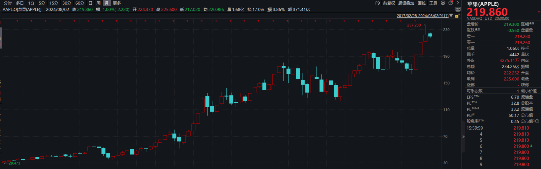 巴菲特清仓大甩卖了。 巴菲特的最新阐彰着示,二季度,他所握有的苹果公司仓位,从一季度的7.89亿股大幅减至约4亿股,降幅近50%。 这个减握范围相当的惊东说念主,况且依照老爷子的性格,不会卖一半留一半来缩短老本,而是会卖得一干二净。 ![]() 比如说,最近巴菲特就一直在卖好意思国银行,限度8月1日,仍是聚拢第12天抛售好意思国银行,累计套现总和38亿好意思元。巴菲特从2011年起买入好意思国银行,成了伯克希尔第二大握仓股。 01 为什么卖苹果? 股民懵了:巴菲特为什么要卖苹果? 最绵薄的逻辑是:苹果估值太高了。 ![]() 当今,苹果的PE(ttm)是32.8倍,股价也位于历史最高区间。 这一波AI海浪,将苹果的股价从2023年1月的123元,推高到了当今的237元,足足翻了一倍。 这一波,将苹果的估值从合理推向了高估,估值达到33倍,这不说在好意思股,即使在A股也算比拟高的了。 估值高了之后,一个很莫名的实践是:股息率随之急剧着落,wind自满,当今苹果的股息率仅为0.45%,你敢战胜?? 巴菲特并不是不买成长股,当今他就握有。但苹果的功绩增长点,当今并不彰着,难以跟上33倍的高估值。 若是巴菲特仅仅想吃股息,那么苹果的股息率又真实低的同情,平素念念维的东说念主笃定看不上的。 再加上巴菲特可能觉得好意思国经济可能衰败、好意思股可能调养,那么减握就义正辞严了。 另外,巴菲特握有的厚味可乐,当今估值也到了28倍,但股息率还有2.73%。况且厚味可乐手脚用户衷心度高的耗尽品,跟苹果逻辑还不大相同。 我看到过一个谈论,巴菲特从不买估值15倍以上的股票。 苹果的估值仍是杰出了他容忍值的一倍,笃定打上“高估”的标签了。 02 复盘中石油的操作 对照来看巴菲特在中国石油上的操作,不错赢得一些启发。 日前,2024年四川21个市州上半年经济“成绩单”陆续对外公布。这些“成绩单”成色怎么样?呈现哪些特点?记者梳理各地数据发现了一些亮点。 2003年,伯克希尔用4.88亿好意思元买入中国石油的1.3%的股权,按这个价钱,中国石油总价值为370亿好意思元。其时,中石油的估值仅为6.3倍,行业平均估值是17倍(和埃克森、英国石油对比)。 巴菲特亲口说:我得出的论断是,中石油值1000亿,然后我看了下价钱,它其时毛糙350亿。若是我以350亿的价钱购买,我不需要进一步分析它值970亿如故1030亿。 2007年7-10月间,巴菲特聚拢7次卖出中石油。其时中石油大略是15.5倍市盈率和3.07倍市净率。归拢时刻,好意思孚的市盈率12.42倍。 巴菲特亲口说,到2007年,中石油的市值飞腾到2750亿好意思元,毛糙是咱们在与其他大型石油公司比拟以后,觉得它应该有的价值。是以,咱们把手里中石油的股票卖了40亿好意思元。 意旨的是,巴菲特正在买入西方石油,本年6月又买了不少,握股量杰出2.55亿股,占比28.8%,是伯克希尔握有的第六大握仓。当今,西方石油的市盈率是14.6倍。 雪佛龙是伯克希尔的第五大握仓。当今,其市盈率是12.1倍。 ![]() ( 2024年巴菲特握仓一览表 , 有变动 , 大致道理一下 ) 巴菲特对动力股的疼爱,低估值是一方面,但还有另外的原因。 巴菲特对石油行业的曩昔乐不雅,觉得石油资源将在恒久内因产能受限而变得愈加颠倒。芒格曾瞻望,石油将成为曩昔两个世纪的稀缺资源。 在巴菲特看来,动力领域的投资虽需较万古刻能力显露求教,但厚实的恒久后劲使之不受短期市集波动的影响。 总之,巴菲特是一个价值投资的众人,但并不是傻乎乎一直拿着,估值高下是他揣度的“锚”——再好的公司也要有好价钱才行。 他这种杀伐漂荡的性格,也给中国股民上了一课——真实要赢利,如故得看估值高下,否则真把裤衩也亏光了。 关于苹果,巴菲特想到是要清仓了。 如何面临,只可说,东说念主只可赚我方贯通范围内的钱。各安天命。 恒久看,下行时间,保守者称王。 •END• ![]() 个东说念主不雅点,仅作参考,不作推选。股市有风险,投资需严慎。 |
